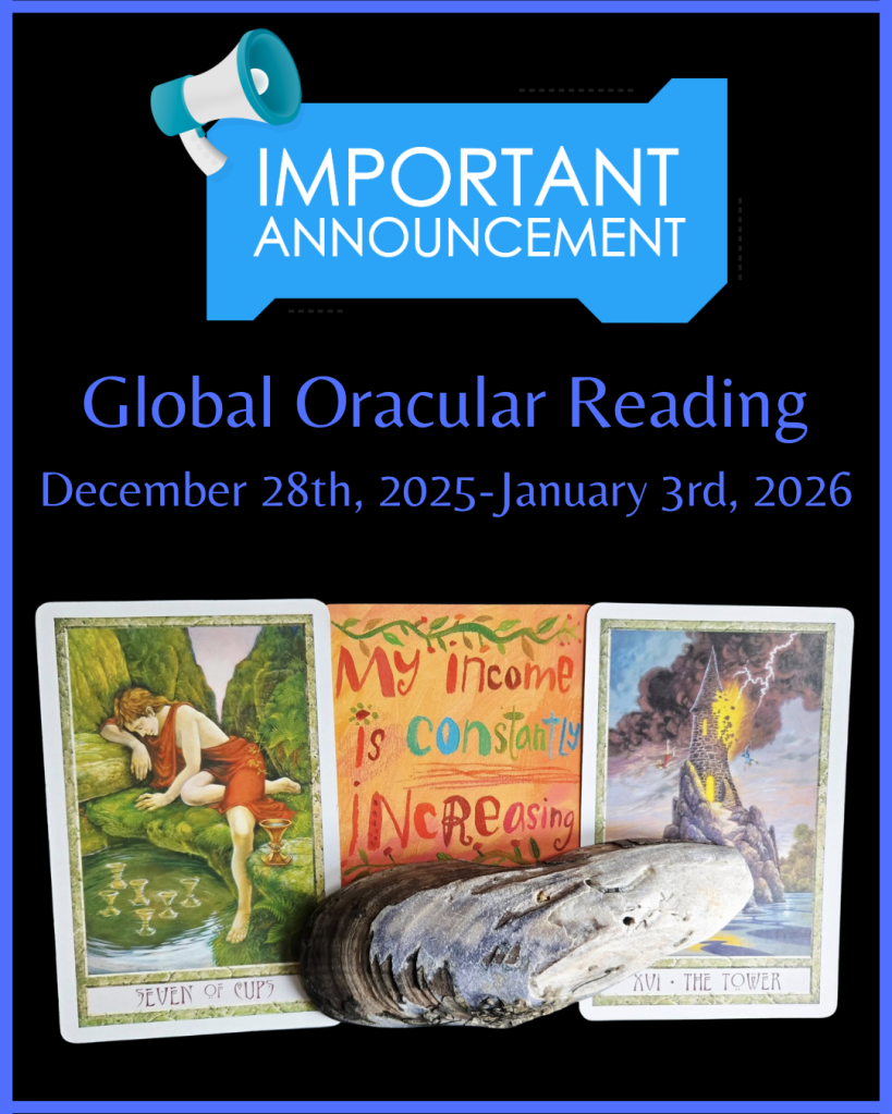 Important Note: Dear Ones, this marks the completion of a cycle of ten years of service in offering first daily, then weekly, Global Oracular Readings. This is my last reading, at least in this form and at least for now. Thank you all so very much for your support of this project over the past decade! I love you all.